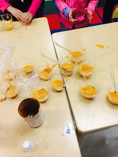 To celebrate thanksgiving today we made pumpkin pie, learned about the holiday, made turkey hats and made mini books. The students really enjoyed making the pumpkin pie and they even served it to their classmates!
